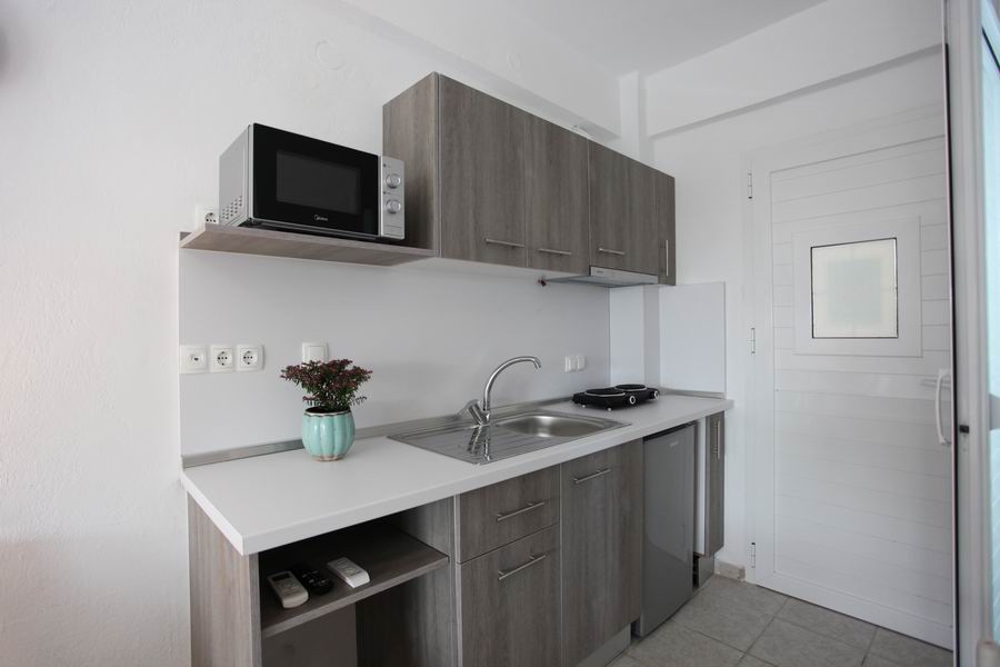 Nachází se v přízemí s prostornou terasou přistíněnou markýzou. Vybavený kuchyňský kout - elektrický dvouplotýnkový vařič, digestoř, lednice, rychlovarná konvice, kuchyňský dřez s tekoucí teplou i studenou vodou a základní nádobí Vám poslouží při přípravě večerního pohoštění stejně jako každodenní stravy.
